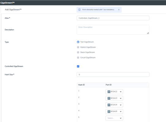| 3 | Controlled GigaStream with Five Hash IDs and Port IDs |