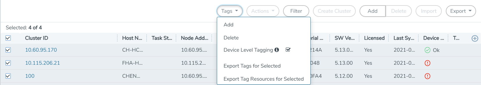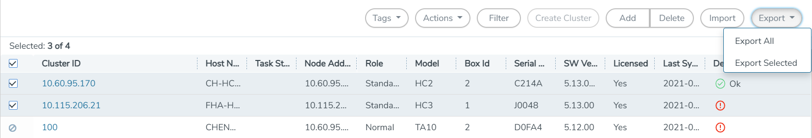 | 2. | In the physical nodes page, select the nodes and clusters you want to export. |
