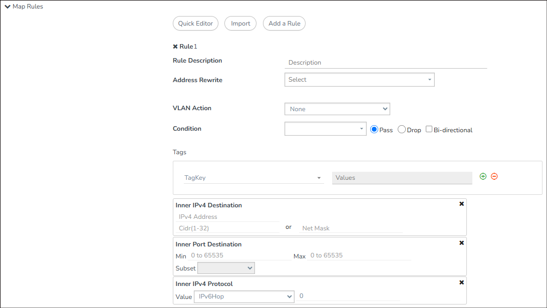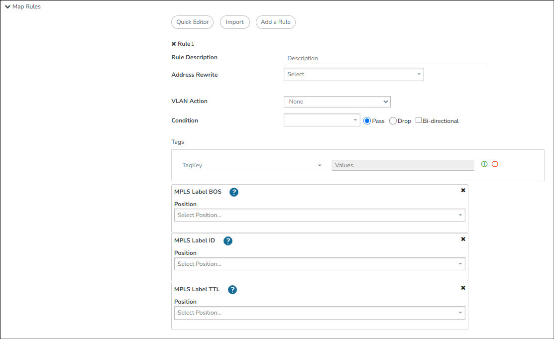 | 6 | Map Rule with MPLS Label BOS, MPLS Label ID and MPLS Label TTL |