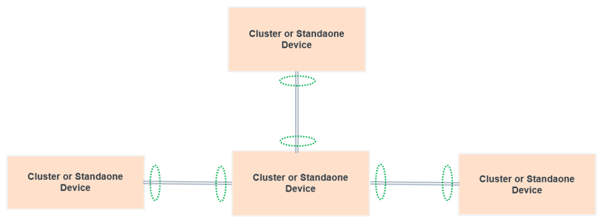 | You can connect standalone nodes or clusters to all spine nodes of leaf-spine cluster. |