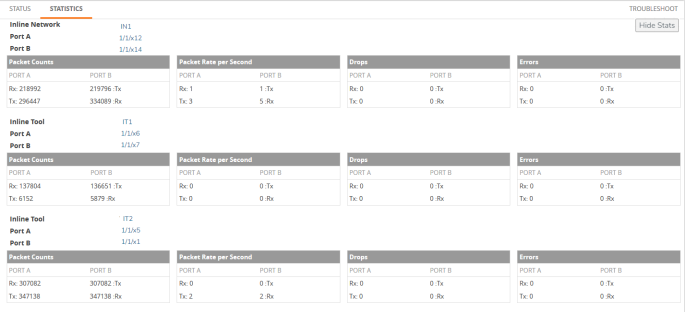 | 2. | Go to the Statistics tab to check the port statistics to ensure that there are no drops, errors, or discards. |