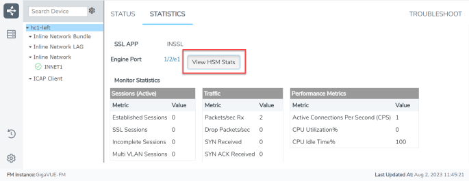 To view HSM Statistics, click the View HSM Stats button on the Statistics tab.