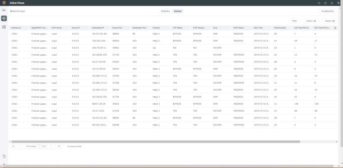 The flexible inline canvas provides you with the ability to view the status of the flexible inline flow deployments, port statistics, and the details of the cluster-level maps used in the deployments. You can use these details to troubleshoot any issues or failures in your flexible inline flows.