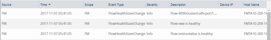 On the Events page, the FlowHealthStateChange event type indicates that there is a change in the health status of a flow. For more information about Events, refer to the “Events” section in the GigaVUE Administration Guide.