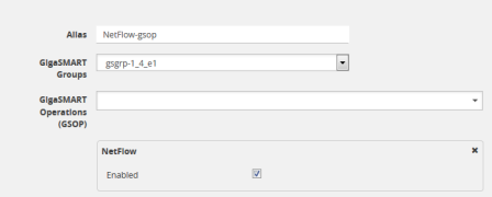 eIn the GigaSMART Operations (GSOP) field, select NetFlow. The NetFlowGigaSMART Operation is enabled by default as shown in 6.