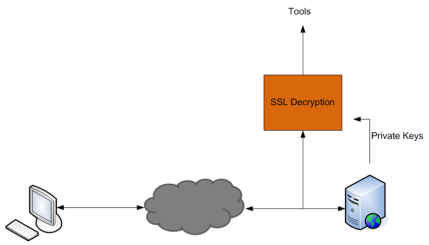 Passive TLS/SSL decryption can be deployed close to the server, as shown in 3.
