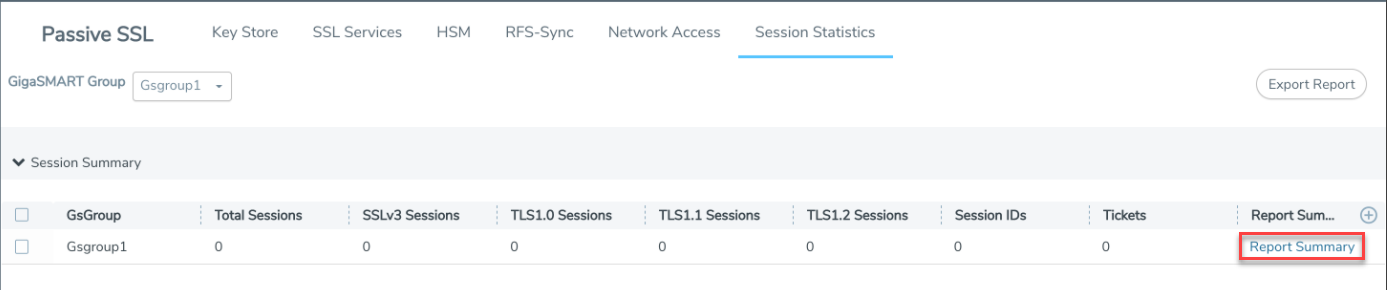 From the GigaSMART Group drop-down list, select the required GigaSMART group. The Session Summary and Session Details appear. For descriptions of the session statistics, refer to Flow Ops Report Statistics for Passive TLS/SSL Decryption.