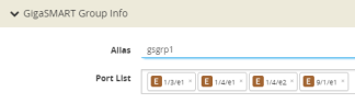 GigaSMART engine ports are numbered with an e prefix using <bid/sid/e1..e2> nomenclature, such as 1/1/e1. For example: