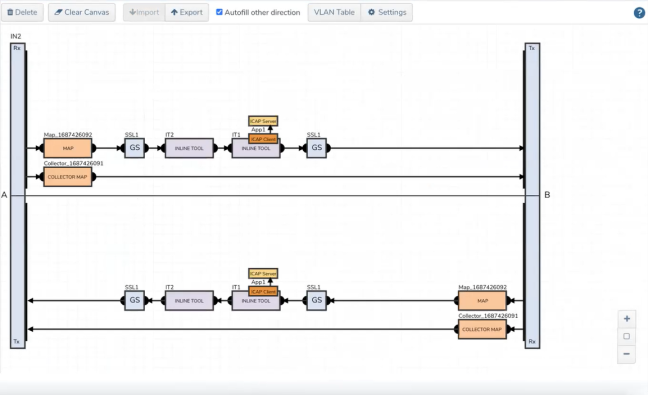 From the Port A and Port B drop-down lists, select the inline tool ports according to the direction the inline tool expects traffic from the network. |