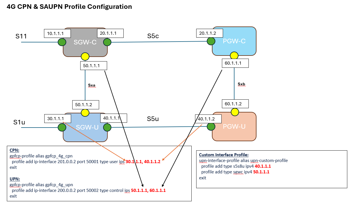 The below topology explains the 4G CPN & UPN Profile configuration.