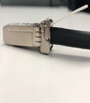 | SFP+ transceivers use metal bail and latch assemblies. The color of the metal bail corresponds to the SFP+ type, as summarized in the following table. |