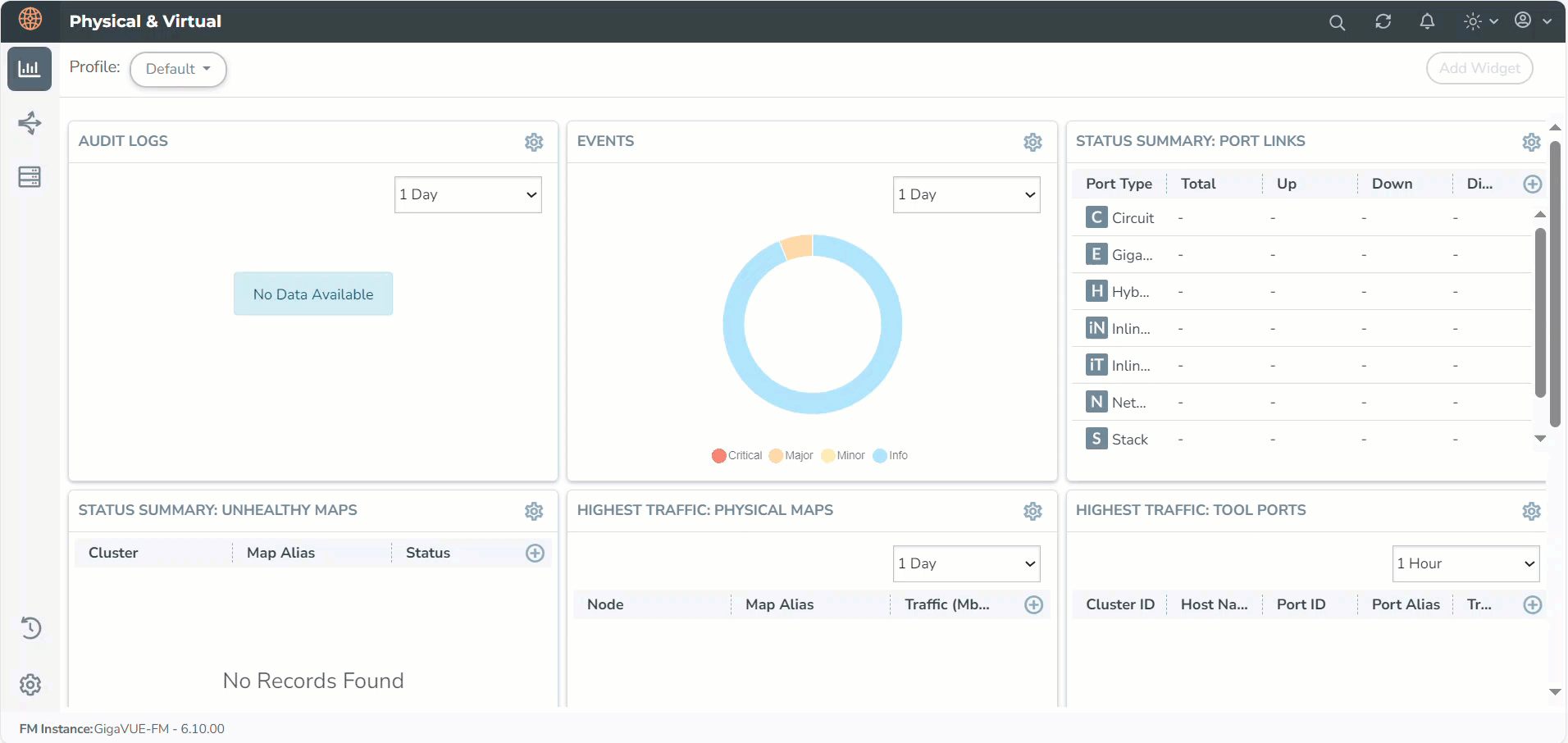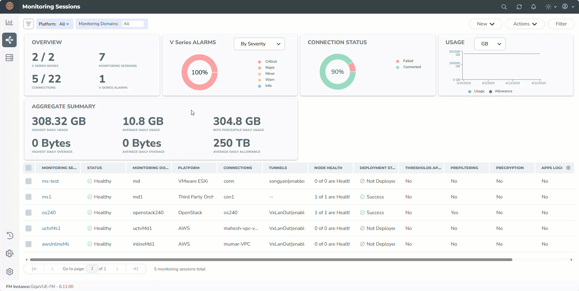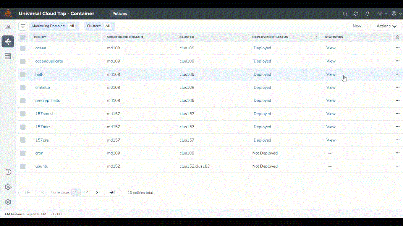 Traffic Policy Statistics in the GigaVUE-FM provide visibility of the policies within a Monitoring Domain.