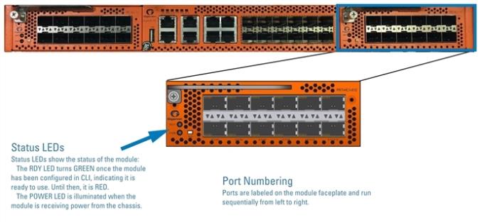 The PRT-HC1-X12 module provides a total of 120Gb connectivity with line rate on-board switching across twelve 10Gb/1Gb SFP/SFP+ ports. Refer to 1 PRT-HC1-X12 Module.