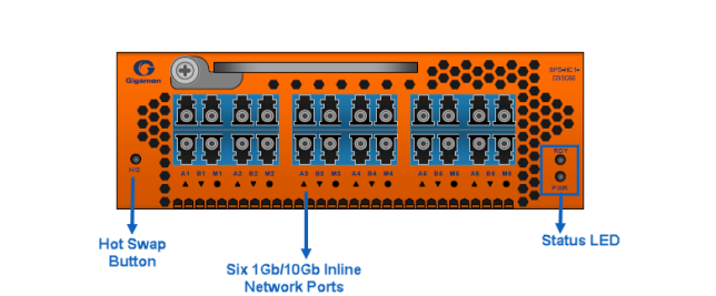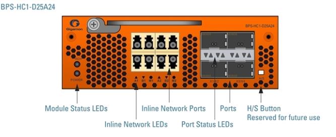 The BPS-HC1-D25A60 is a multi-mode SR 1Gb/10Gb bypass module. Bypass Modules offer six inline network port pairs each.
