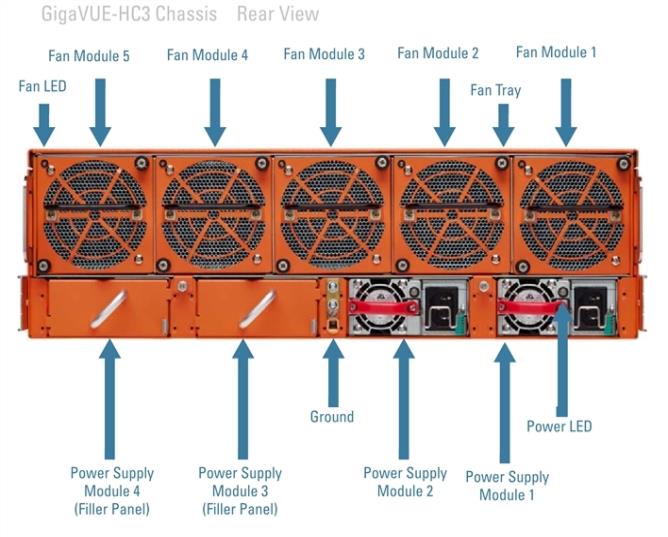 Rear Components on the GigaVUE‑HC3 Chassis | |