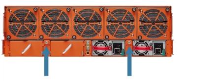 | 1. | Locate the two thumb screws at the bottom of the fan tray as shown in 1 Fan Tray Screw Location on GigaVUE‑HC3 Rear. |