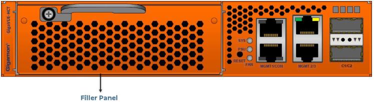 | 4. | Leave all protective filler panels in place in the chassis. DO NOT install the modules yet. Gigamon recommends rack-mounting the GigaVUE-HCT chassis empty. |