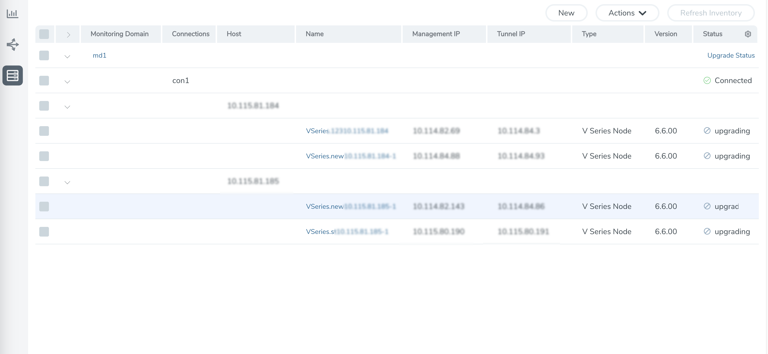 - You can select an entire monitoring domain and upgrade all the GigaVUE V Series Nodes in that particular monitoring domain, or you can select an entire host and upgrade all the GigaVUE V Series Node deployed in that particular host.