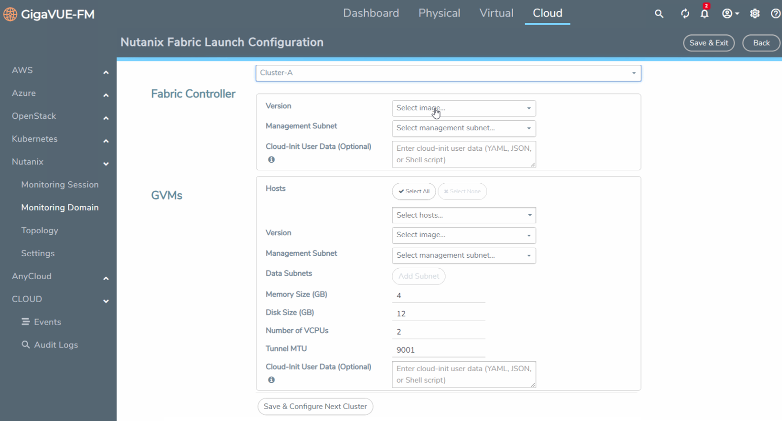 - After Nutanix Configuration in GigaVUE‑FM, you are navigated to Nutanix Fabric Launch Configuration page.